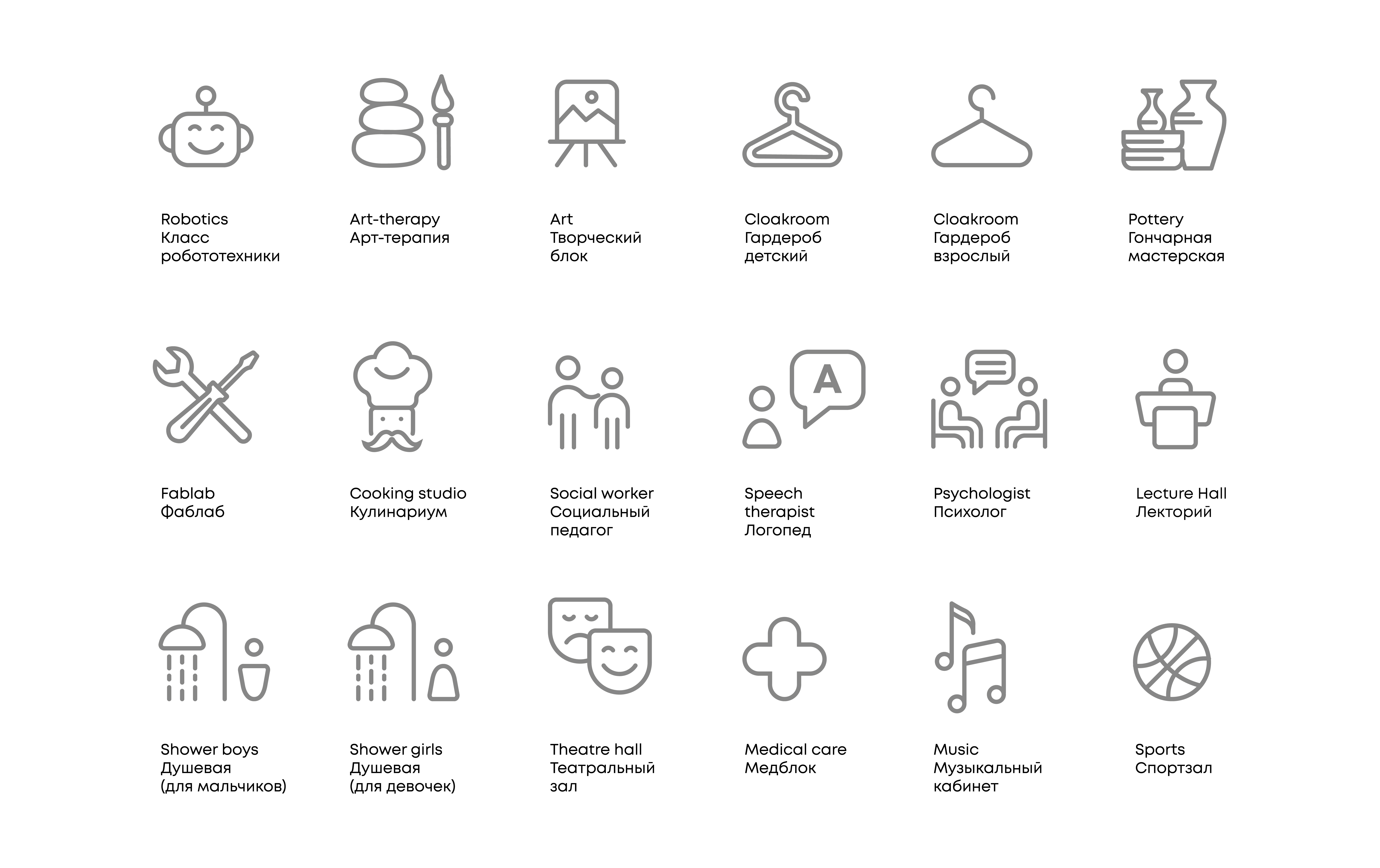 Мы создали концепцию, которая охватывает внешние и внутренние пространства кампуса, выстроили нейминг зон и кабинетов, задали визуальные и типографические правила. В итоге школа получила не только удобные ориентиры, но и цельный визуальный язык, отражающий масштаб и философию образовательной среды.