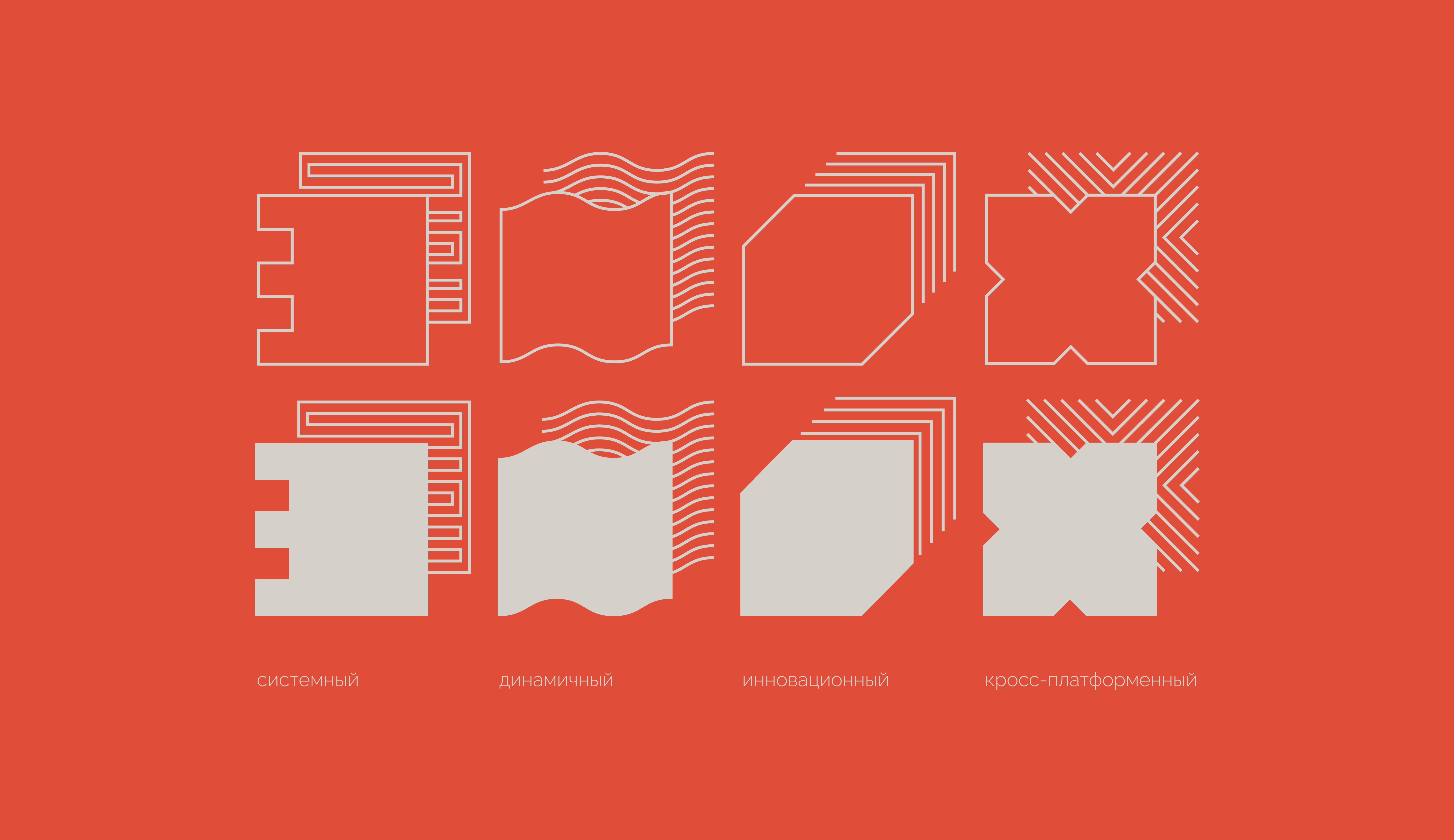 Цветовое и типографическое решение выдержано в сдержанной, но контрастной гамме, чтобы подчеркнуть технологичность и серьезность платформы. При этом пластика форм и разнообразие графических элементов создают визуальный интерес и удерживают внимание креативной аудитории.